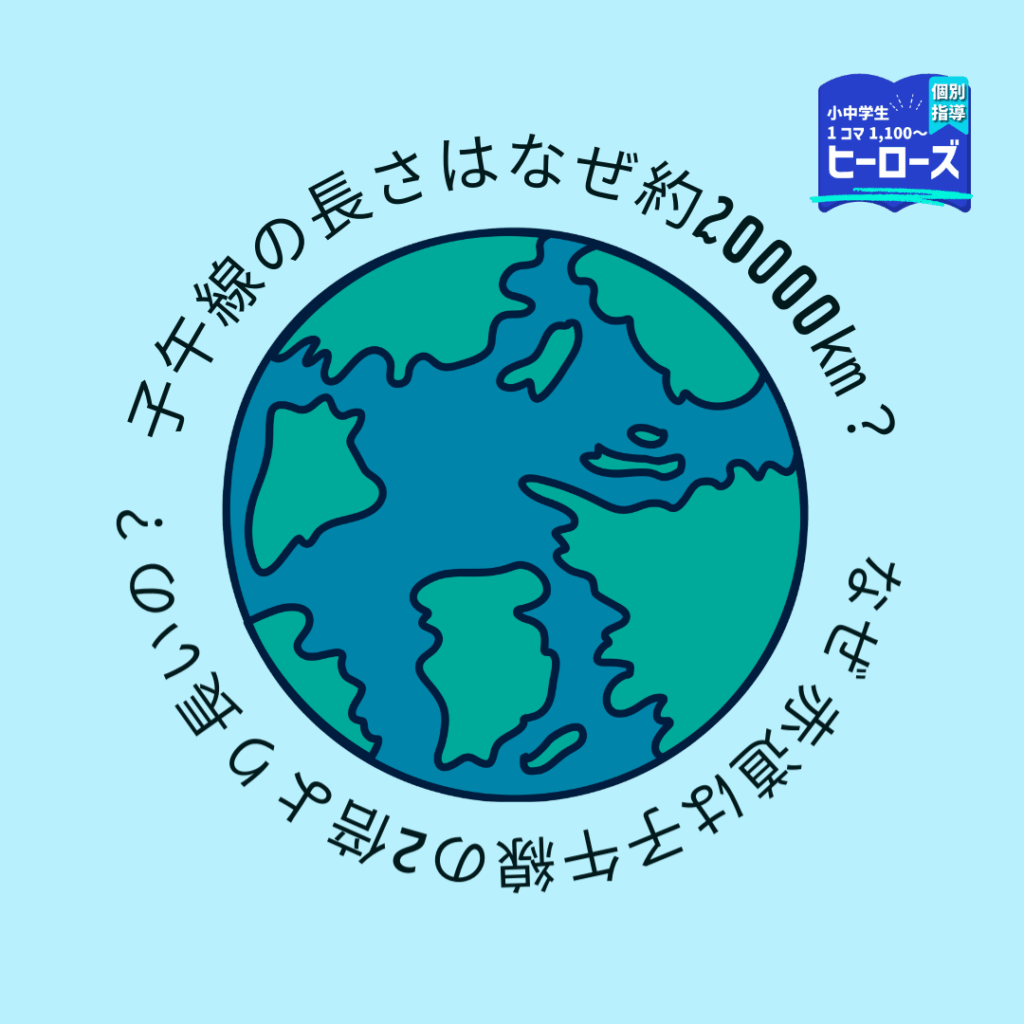 地理の勉強中に「約2万㎞」という数字に目を留めたことはありませんか?実は、1メートルの基準は北極点から赤道までの長さの1千万分の1から来ていました。今では基準が変更され、1秒の299792458分の1の時間で光が真空中を進む距離として定義されています。その結果、子午線の長さも微妙に変わり約20004㎞となっています。これに対して、赤道の周囲は子午線の2倍よりも長い約40075㎞。地球の自転が生む遠心力がこの違いを生んでいるのです。 こうした地理・理科・数学の知識は結びついています。「こんな知識、将来何の役に立つの?」と思っているかもしれませんが、実はどれも大事な学びの一部。中学で学ぶ内容は、未来への大切なステップです。 ヒーローズでは定額で何コマでも学習ができる学び放題コースをおすすめしています。中学生は9900円から始められます。ただし、定員には限りがあるので興味のある方はお早めにご相談ください。